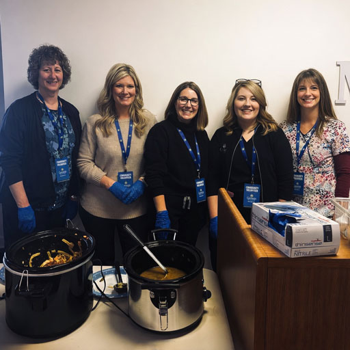 ![]() | On Feb. 12, 2026, Accounting coworkers Angela Eberhard, Shelley Ormond, Kim Birkhimer and Season Grandstaff volunteered their time to package meals at Christ’s Table. |
